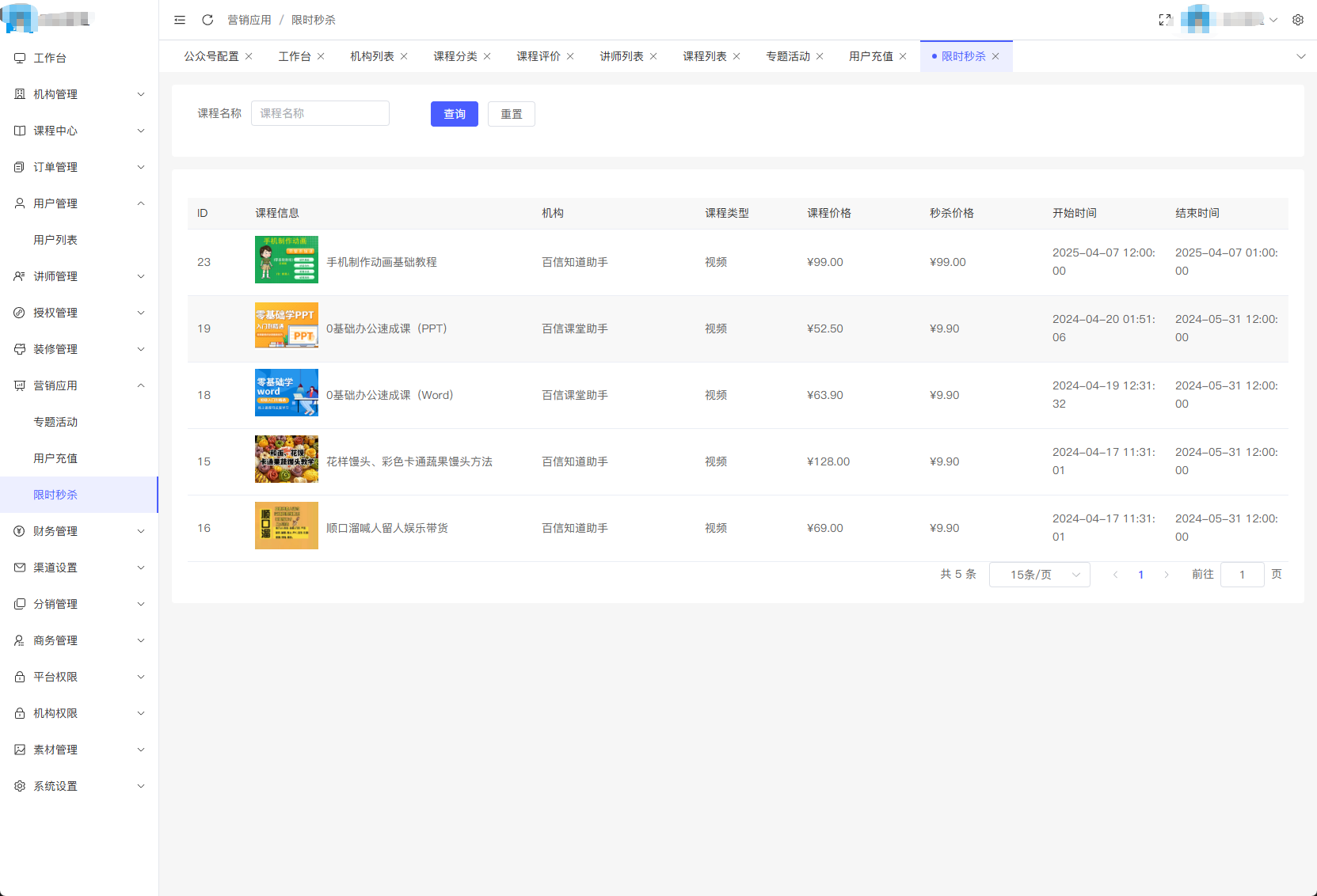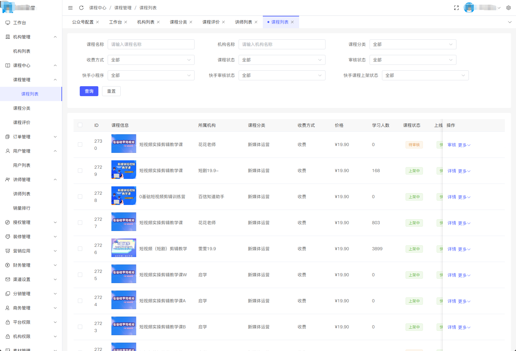 平台管理:机构审核、讲师管理、课程审核、订单对账